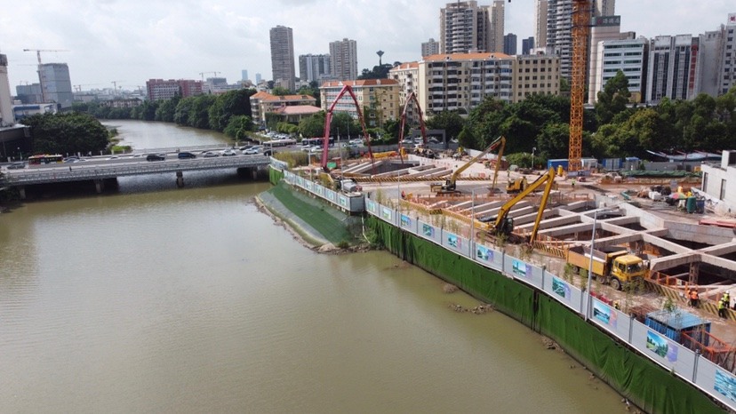 为什么赤岗站会“迟到”?十二号线赤岗站施工单位介绍,车站因周边环境极复杂、分期征拆、上跨下穿地铁八号线等问题,导致整个车站与附属基坑被分割为8个大小不一的异形基坑,最大的坑体不足2000平方米,最小的仅600平方米,像散落在地下的拼图碎片,常规大型设备无法开展作业。