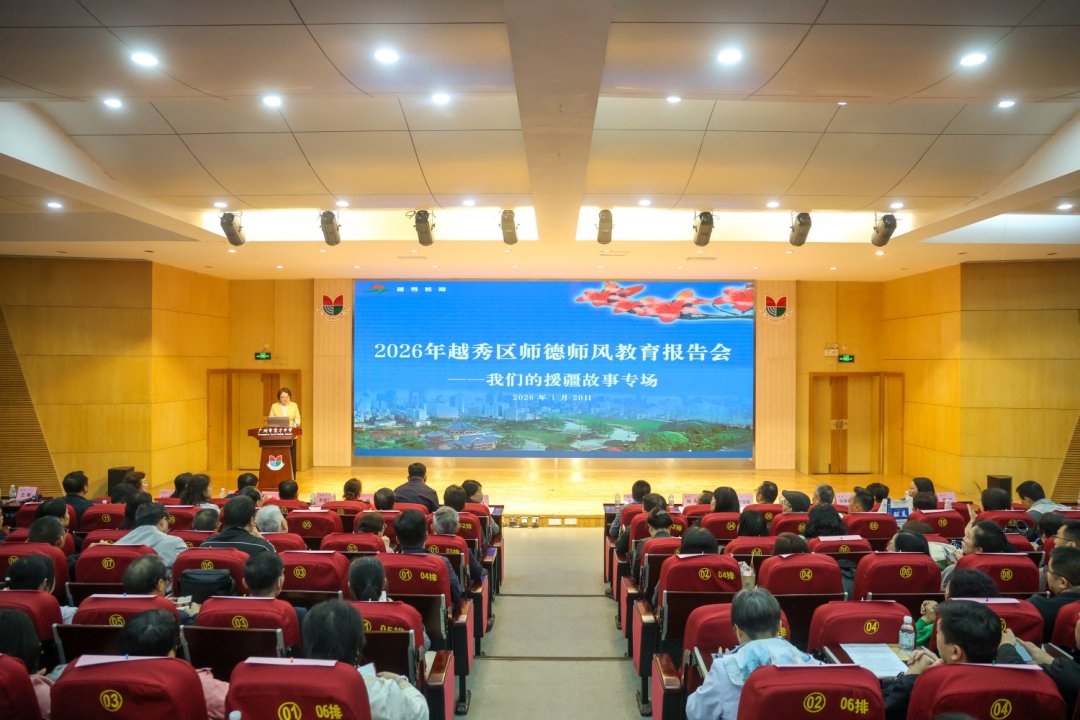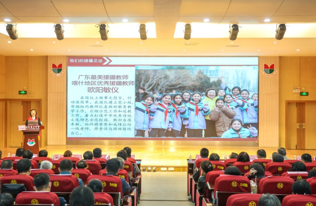 2026年1月,广东省第二批组团式援疆教师圆满完成三年支教使命,从天山南麓载誉返穗,行囊里装满了戈壁的星光与师生的深切情谊。恰逢这一温暖契机,为深入贯彻落实《中共中央、国务院关于弘扬教育家精神加强新时代高素质专业化教师队伍建设的意见》,1月20日,越秀区教育局在广州市育才中学举办2026年越秀区师德教育报告会——“我们的援疆故事”专场,充分发挥越秀区教育援疆典型的示范引领作用,进一步凝聚全区教育工作者的责任担当与育人初心。