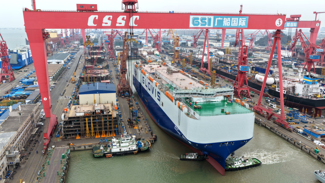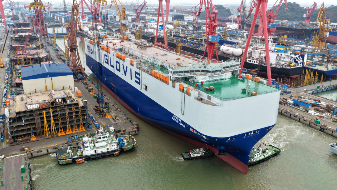 1月21日,广船国际为韩国HMM建造的10800车LNG双燃料汽车运输船首制船顺利出坞。该船船长230米、型宽40米,14层甲板可装载10800辆汽车,满足IMO Tier Ⅲ排放标准,一次加注LNG即可环球航行。项目团队攻克“双耳罐”燃料舱等难题,实现8甲以下坡道完整性,标志着我国高端清洁能源船舶建造再获突破。