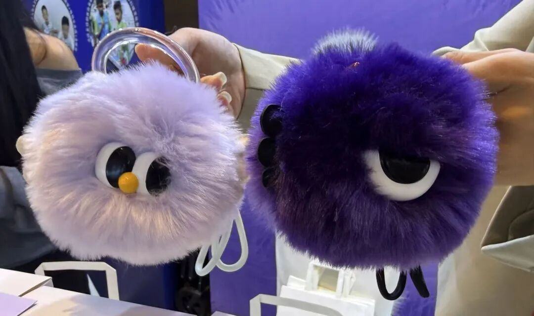 放眼展区,AI玩具在设计思路上呈现出清晰共性:以毛绒质感为主线,向不同场景延伸。深圳BrainMind的紫色圆形毛绒玩具,仅凭灵动大眼与柔和配色,就吸引不少女性观众驻足;奥秘智能的AI“喵星人”憨态可掬,虽定位3至8岁儿童,同样引得成年观众爱不释手反复把玩。