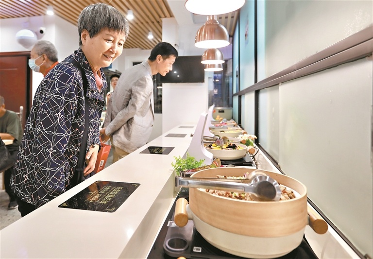 市民在越秀区三眼井社区的“幸福食堂”参加活动。