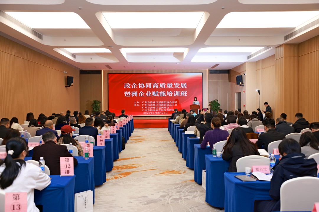 2026年1月20日,广州市海珠区琶洲街道聚焦“政企协同共促高质量发展”主题举办企业赋能专题培训班。琶洲地区超100家企业负责人与行业专家学者齐聚一堂,通过政策解读、专题授课、现场教学、交流研讨等多元化形式,搭建政企沟通桥梁,助力企业把握“十五五”发展机遇,推动琶洲区域经济高质量发展。