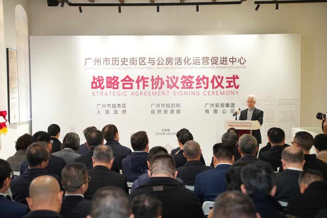 1月22日上午,广州市越秀区文德东路29号文德园内,“广州市历史街区与公房活化运营促进中心”正式成立。该中心由广州市规划和自然资源局、越秀区人民政府、广州安居集团有限公司三方共建,旨在搭建广州历史街区与公房资源整合与活化运营促进的协作平台,凝聚政府、企业、专业机构与社会多元力量,构建“系统性保护、整体性活化、可持续运营”的存量资源盘活新路径。