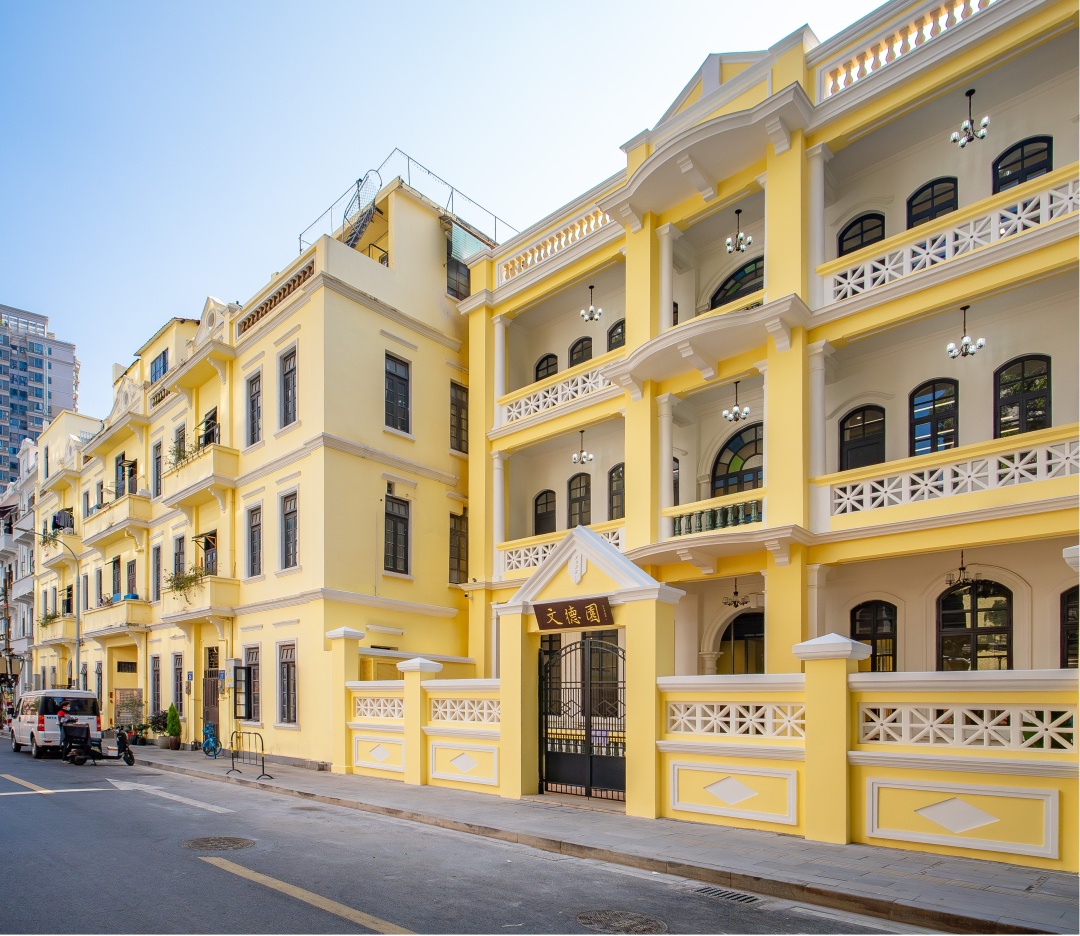 文德东路29号(文德园)就是该区域首个活化运营的项目。该历史公房紧邻文德楼,危旧破败且长期空置。广州市城市规划设计有限公司采用“新旧融合”原则,在彰显历史风貌的同时,也营造出适应新功能业态的现代化空间,按照“运营前置”理念,将首层改造为集展览、文创、咖啡于一体的复合公共空间,并提出“以修代租”这一公房盘活的创新模式,为区域历史公房盘活提供了“投资—修缮—运营”系统性解决方案。焕新后的文德园将成为促进中心的常设办公地。