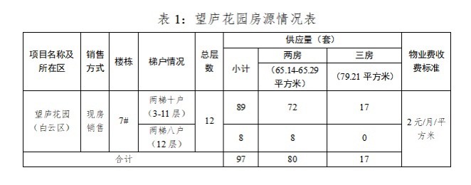 本次推出的楼栋为7#,供应房源97套,房屋户型、套数等情况详见下表: