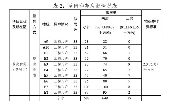 本次供应房源688套,房屋户型、套数等情况详见下表: