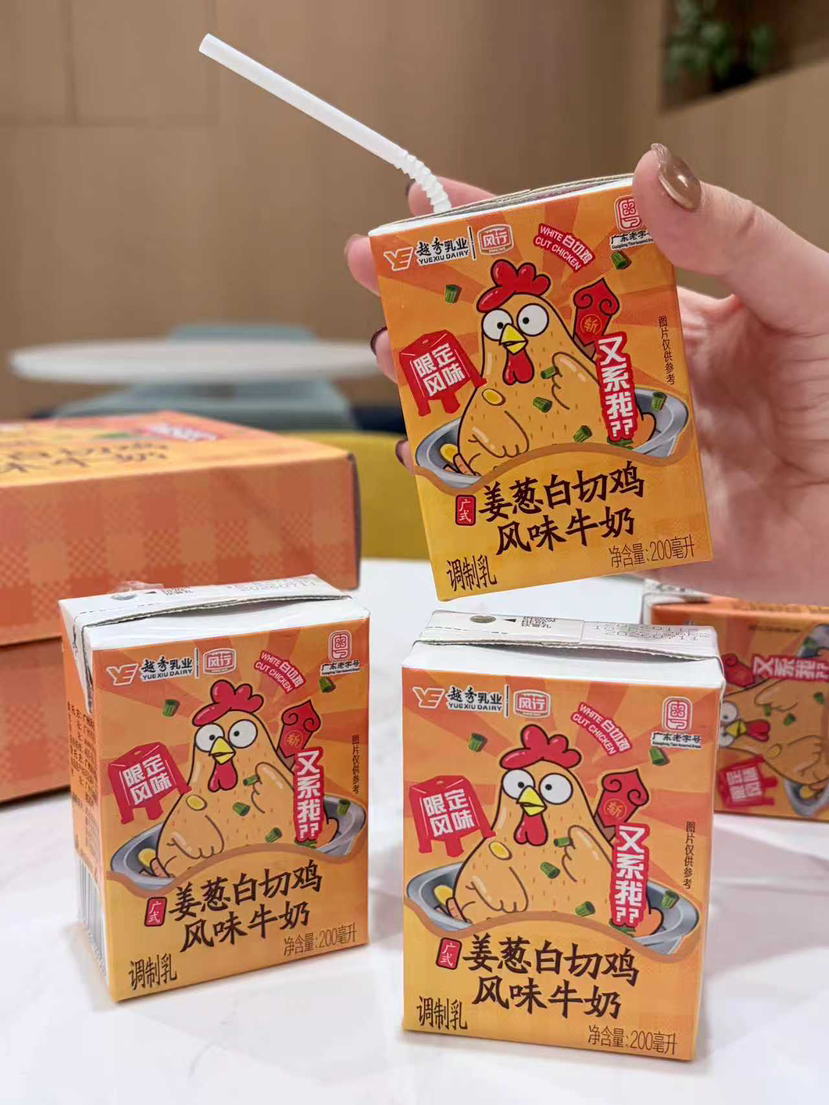 近日,越秀风行乳业推出的一款“广式姜葱白切鸡风味牛奶”成为消费市场与社交平台热议的焦点。这款将经典粤菜风味与日常乳品巧妙融合的限定产品,不仅迅速售罄,更以其破格的创意展现了本土老字号品牌的创新活力。