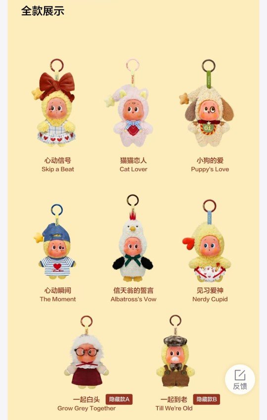 其中,该系列毛绒挂件盲盒中的隐藏款“一起白头”和“一起变老”颇受欢迎,成交价均由89元一度涨至699元,溢价6.8倍。
