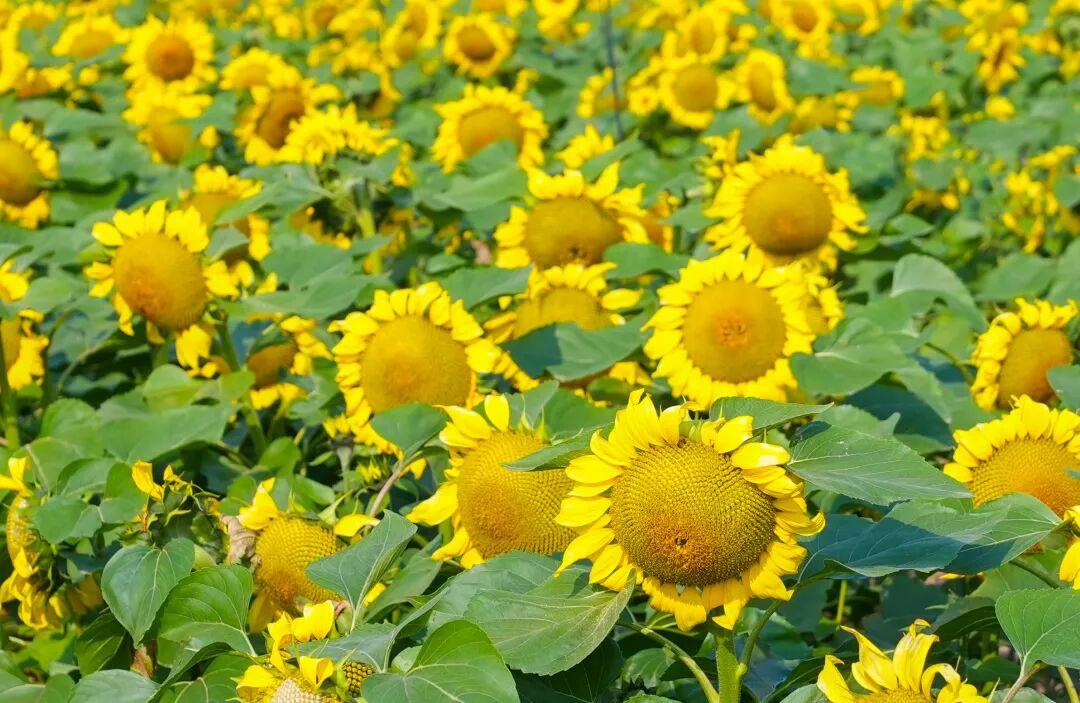 目前已进入盛花期,5批葵花陆续绽放,花期长达一个多月。
