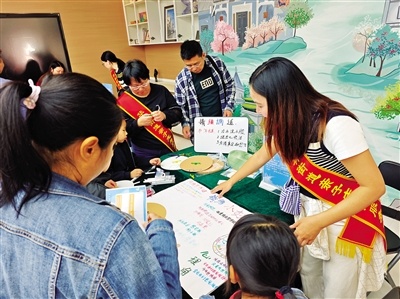 亲子志愿者为街坊讲解互动规则。
