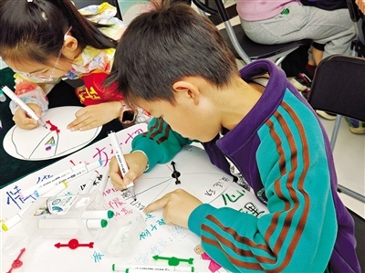 孩子在“情绪魔法转盘”区制作。