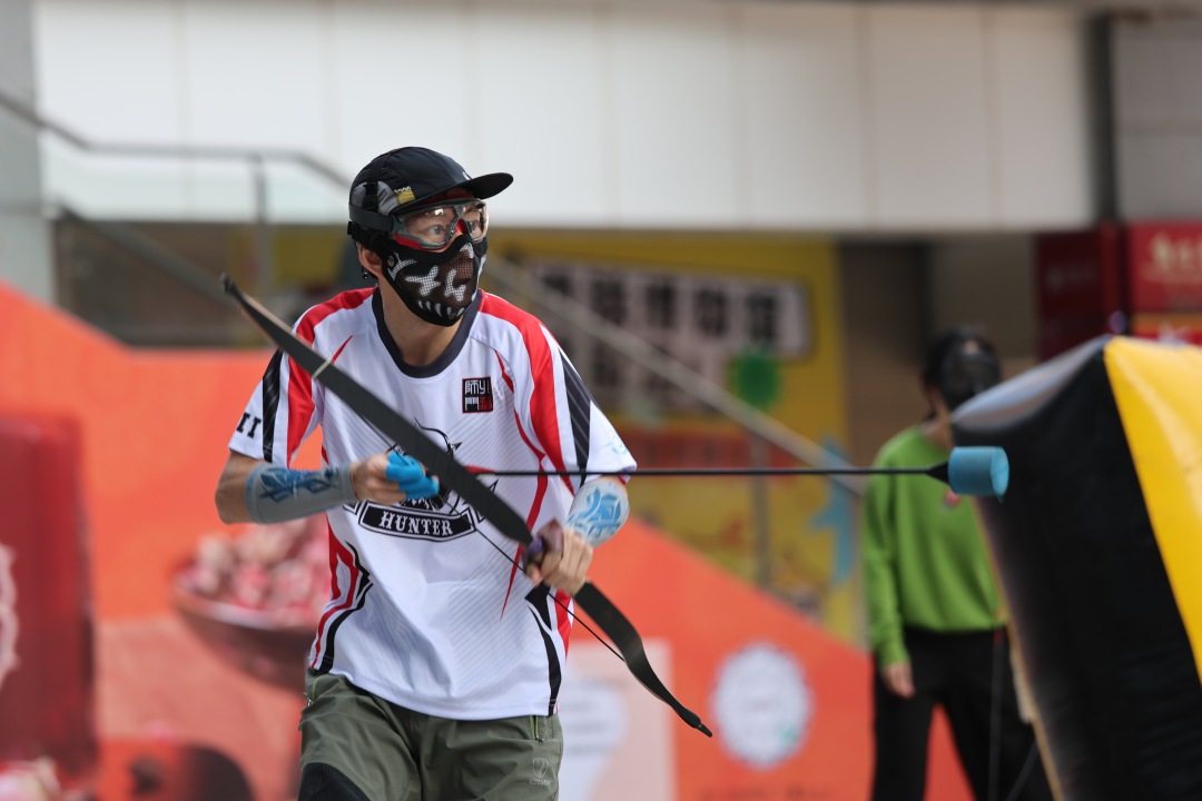 海珠区射箭协会在万胜广场开展的攻防箭活动,正是这一城市发展思路的鲜活实践。这种将潮流运动与商业空间结合的模式,打破了传统体育场地的限制,让运动变得触手可及,也为商圈创造了独特的吸引力。攻防箭是一种充满策略与趣味的对抗性射箭运动。参与者分为两队,以场地中的掩体为据点,使用特制的安全海绵箭矢展开攻防对抗。这项运动远不止简单的“互射游戏”,而是对身体与头脑的全方位锻炼:敏捷身手:在掩体间快速移动、闪避,需要出色的反应速度;射箭技巧:掌握拉弓、瞄准、放箭的基本功,实现精准射击;