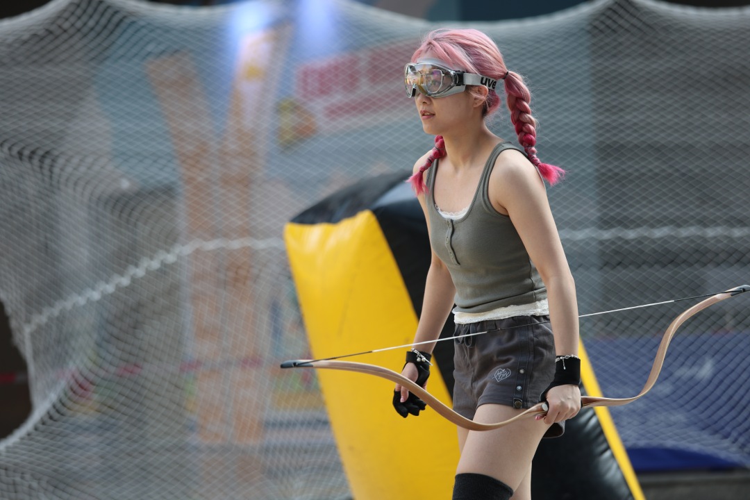 弓弦轻响,海绵箭划过一道弧线,精准命中掩体后的目标,人群中爆发出阵阵喝彩——这不是专业赛场,而是海珠区琶洲万胜广场下沉广场每个周末上演的生动场景。