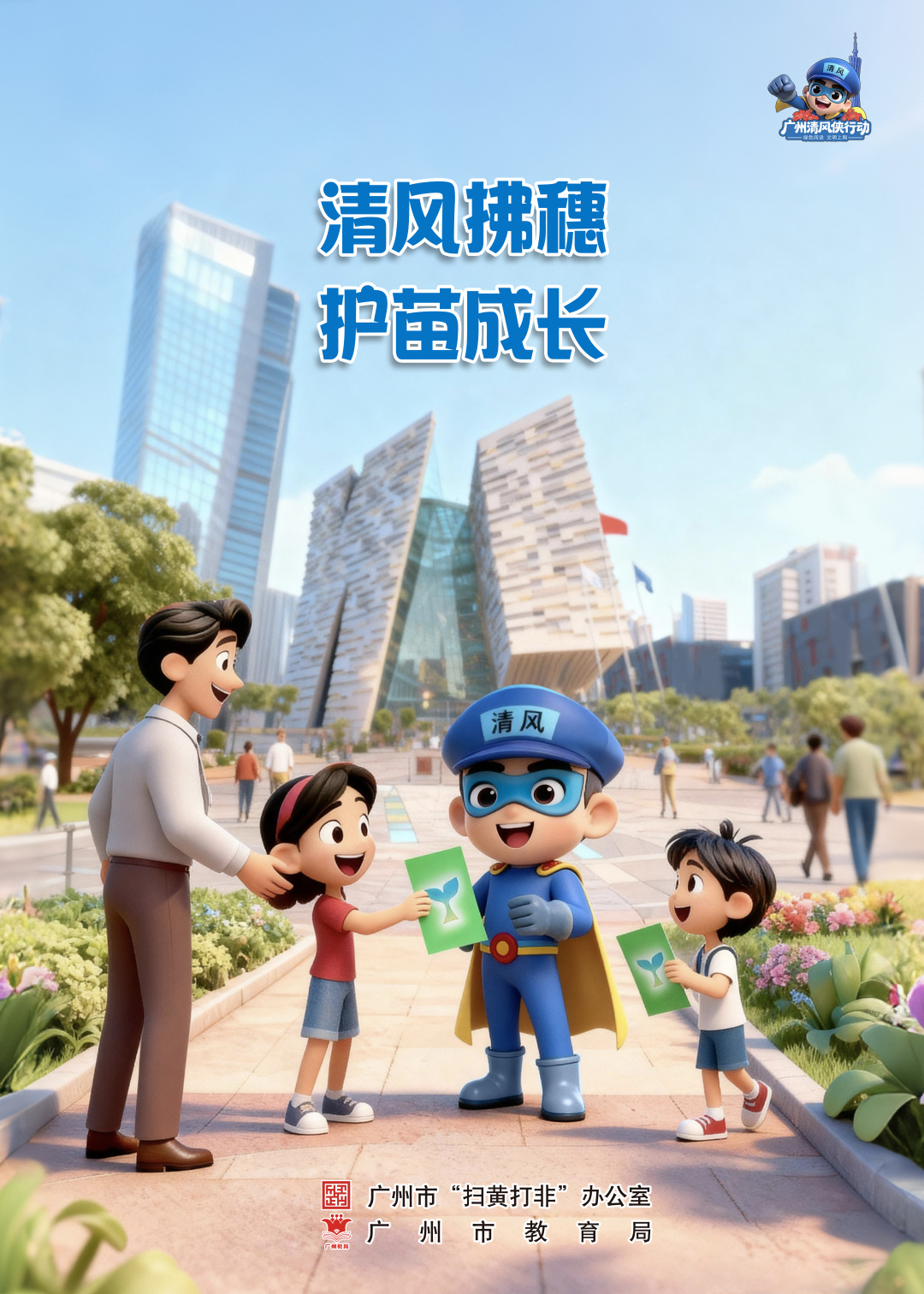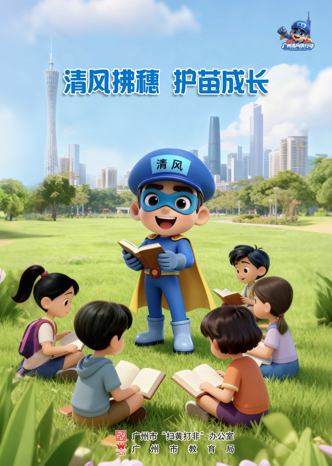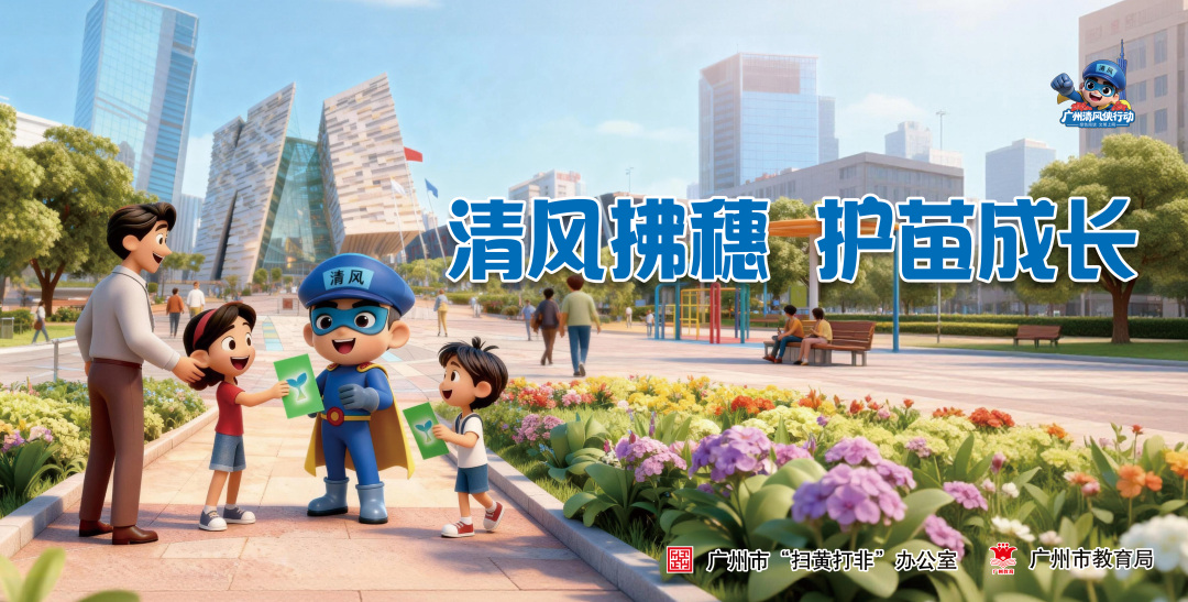 近日,广州市“扫黄打非”办公室联合市教育局推出“绿书签行动”宣传海报。该系列海报共5张,以广州“扫黄打非”动漫IP“清风侠”为主角,结合校园、城市地标等广州特色场景,突出“汇聚你我力量,共护健康成长”主题,传递“绿色阅读、文明上网”理念,在全市范围内掀起“清风侠”护苗宣传热潮。