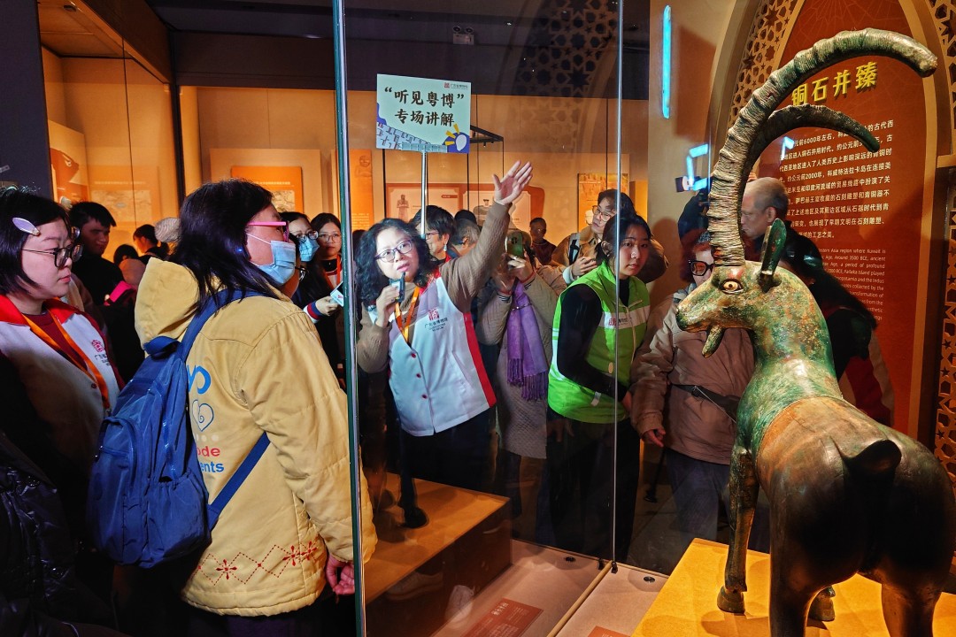 1月24日,在广东省博物馆《科威特王室珍藏展》的展厅内,呈现出两种截然不同却又和谐共鸣的导赏场景。一边,视障观众在轻声细语的口述引导下,指尖轻触文物模型,侧耳聆听一部跨越时空的文明史诗;另一边,听障观众注视手语老师在空中流畅舞动的双手,通过无声的手语“听见”展品背后的历史与艺术。这两场以指尖、耳畔和手势开启的跨越时空的文明对话,正是每月一会的“听见粤博”和“相‘手’粤博”无障碍专场,其初衷始终如一:让所有观众,无论他们以何种方式感知世界,都能平等地走近这批来自波斯湾畔的千年珍宝。