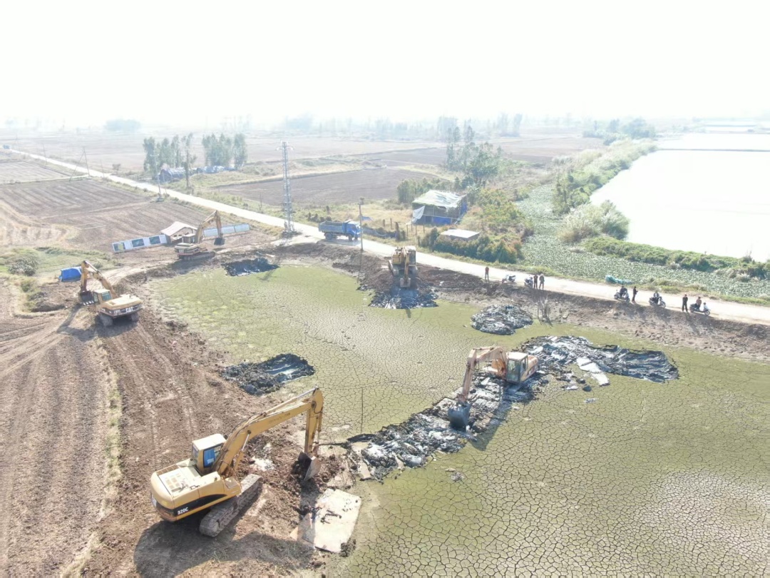 工程启动前,海珠区人武部召开专项部署会,将民兵编成指挥协调、机械操作、综合保障等小组,明确任务分工,并强调工程对雷州半岛灌溉保障及区域协调发展的战略意义,激发参建热情。民兵队伍携带挖掘机、自卸车等装备,投入疏浚沟渠、整治淤塘任务。采用“机械+人工”协同作业模式,克服渗水、道路狭窄等难题,仅三天就清理淤泥5000余立方米,疏通水渠超100米,保障工期进度。