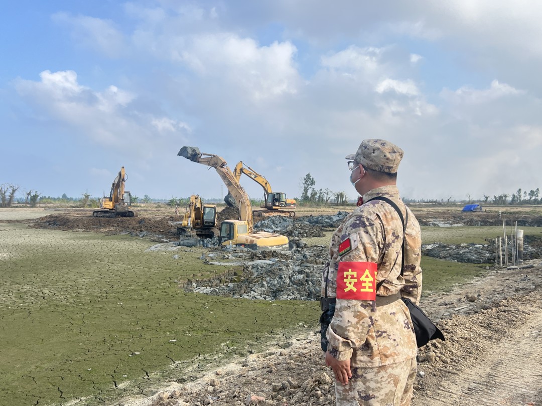 增城区人武部则是锚定“安全护航攻坚”核心,创新传统安防模式,以精准部署筑牢施工防线。他们摒弃了单一值守模式,创新打造“全域覆盖、重点聚焦”的立体警戒网络。结合施工区域地形特点,在边坡险段、淤泥深区、村道接口等关键位置科学设置警戒点,形成“核心作业区专人驻守、周边通道流动巡查、危险区域物理隔离”的三重防线。民兵警戒员佩戴醒目标识全天候值守,通过“眼看、耳听、口劝”的实操方式,及时劝阻无关人员靠近,动态排查边坡松动、淤泥塌陷等安全隐患。