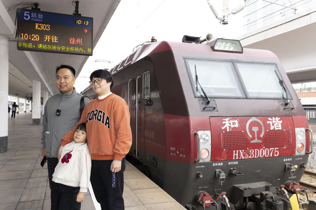 最后一班普速列车K303次,途经东莞东、赣州、南昌、阜阳等15站,延续着普速铁路的普惠与温情,为这段历史画上了温情的句点。距离发车还有20分钟左右的时间,旅客陈先生拉着行李箱兴冲冲地走上站台。他告诉记者,30多年前他就是坐着绿皮火车来到广州的,如今在广州安家。这次他在网上刷到广州站始发最后一班普速列车的消息,特地买票搭乘,就是为了和绿皮火车好好告个别,“退休以后,我坐火车出行都是选择绿皮车,今天这趟车也到我老家,但我是专门坐它去旅游的,想要再好好感受感受。”