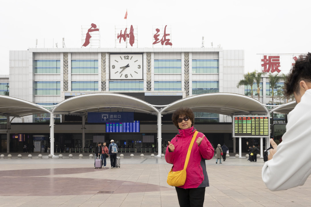 广州站的历史,是一部浓缩的中国铁路发展史。其渊源可追溯至1911年建成的大沙头火车站,1951年正式定名为广州站,1974年迁址流花湖畔后,成为华南地区重要的铁路枢纽和特等客运站。从20世纪80年代的务工大潮,到春运期间日均超23万人次的客流高峰,一列列墨绿色的车厢,承载着无数人的梦想与乡愁。站前“统一祖国、振兴中华”的标语,早已超越字面意义,融入几代人的集体记忆,见证着国家的奋进与个人的足迹。广州车站广州客运车间党总支书记涂阳文告诉记者,对广州站而言,可以说大致上有三个主要时间节点,第一个是上世纪末到本世纪初,当时运行的都是普速列车,第二个是2016年动车首次开进了广州站,第三个就是今天始发最后一班普速列车,“全国各地的朋友到广州的话更方便了,大家到了广州站之后就能直接进入市区。”