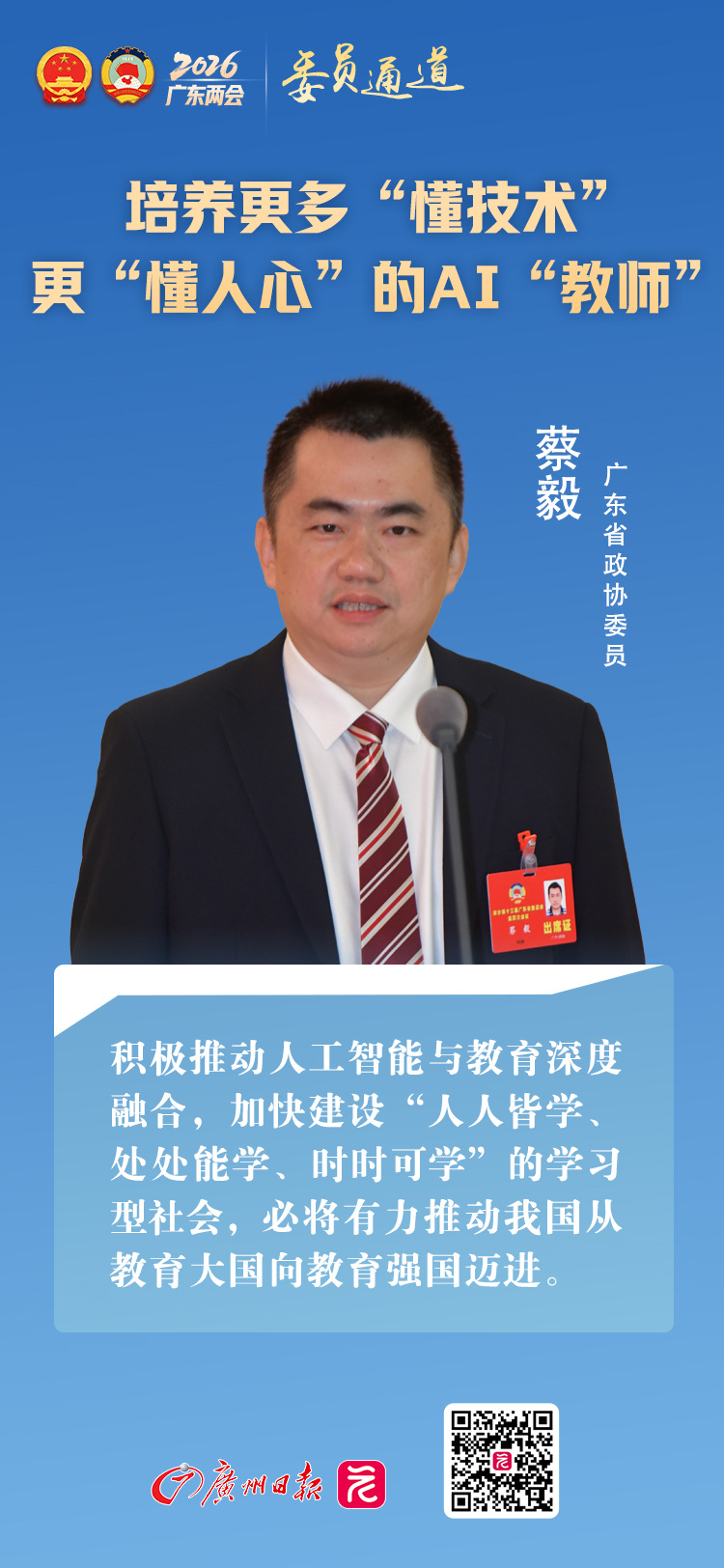 “大家有没有发现,身边越来越多的老人家,使用手机中的AI软件,饶有兴致地学习新知识;地铁上的职场青年,利用通勤碎片时间‘充电’。这些不起眼的小场景,已在不知不觉间成为我们的日常。”省政协委员、华南理工大学软件学院院长蔡毅围绕推动人工智能与终身教育深度融合建言献策。