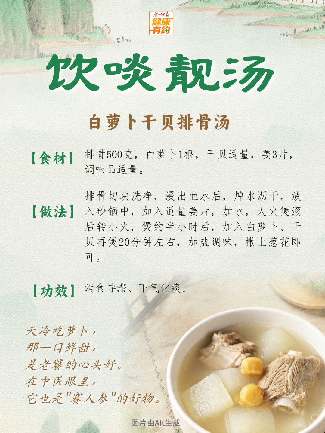 周末容易食多食滞,周一开工,不妨煲碗白萝卜汤清一下热气吧。