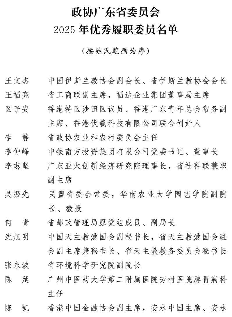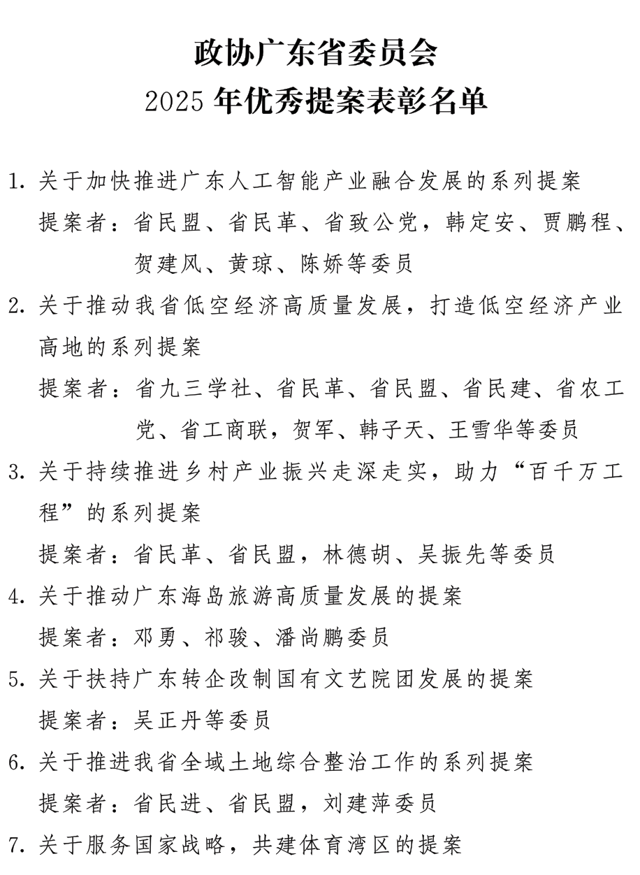 1月25日,广东省政协十三届四次会议在广州开幕。大会听取中国人民政治协商会议广东省委员会常务委员会关于政协十三届三次会议以来提案工作情况的报告,并对《关于加快推进广东人工智能产业融合发展的系列提案》等55件优秀提案、王文杰等23名履职表现突出的委员予以表彰。名单如下:
