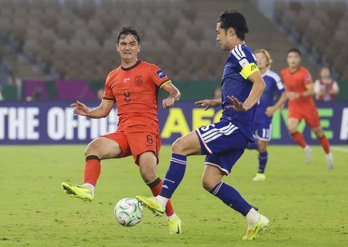 上半场比赛中,中国队0:2落后。比赛伊始,中国队拼劲很足,双方场面基本均势。然而第12分钟,中国队禁区内盯人不紧,大关友翔的攻门发生折射后变线入网。这是中国队在本届杯赛中的首个丢球。第20分钟,日本队前场逼抢,小仓幸成断球后劲射破门,将场上比分改写成2:0。