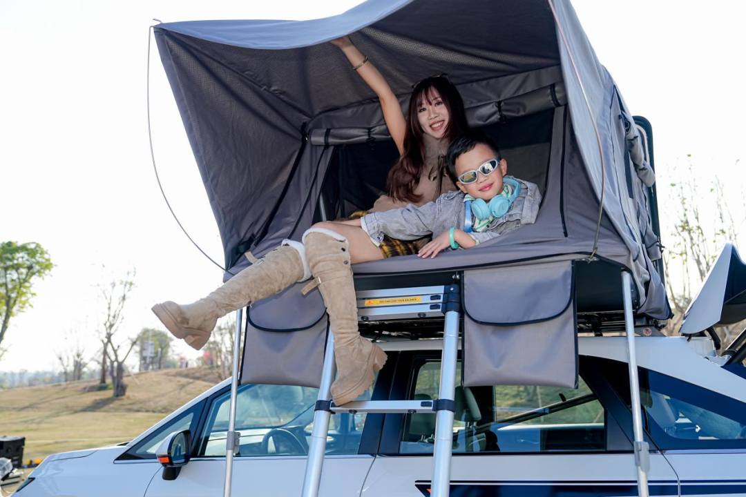 原厂自带的车顶帐篷系统精准解决家庭户外休憩难题,采用便捷拆装结构,单人即可快速完成搭建与收纳。帐篷展开后拥有2米乘1.6米的超大空间,外壳和底座严选工程级ABS材质及强承重铝合金导轨,最高承重达350公斤,帐篷面料采用600D高密度防水牛津布,防水指数高达8000mm,氪应对狂风暴雨等复杂天气。同时,车内座椅可放平形成2.5米纯平大床,与车顶帐篷组成“双层休憩空间”,满足4—5人露营住在车上的需求。再加上遮阳帘、内置三个充电口等实用配置,进一步提升露营场景的实用性与舒适度。