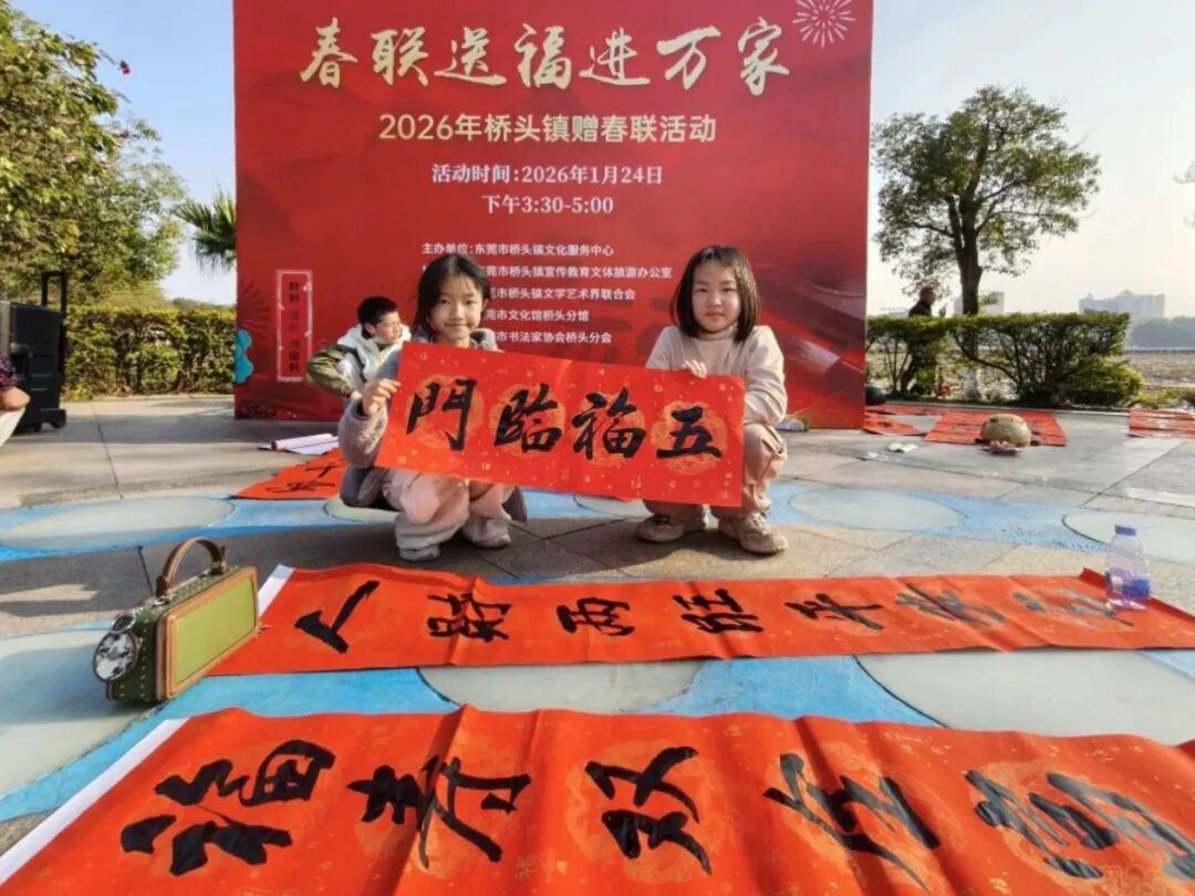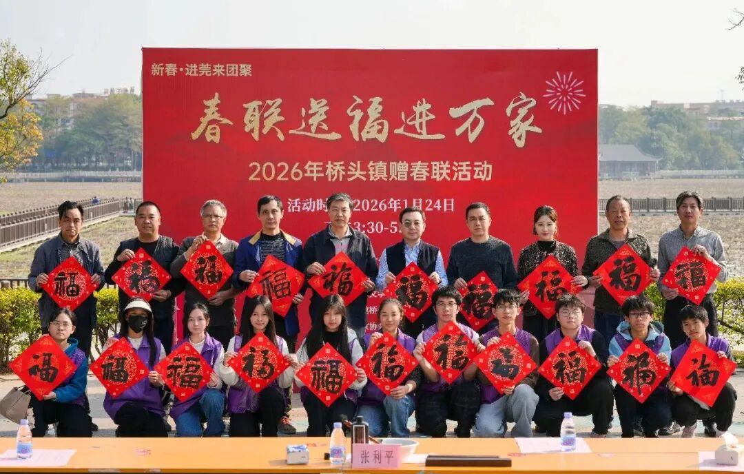 无联不成春,有联春更浓。1月24日,由东莞市桥头镇文化服务中心主办的“春联送福进万家”2026年桥头镇赠春联活动在莲湖亲水平台喜庆举行。活动现场红纸铺展、墨香四溢,一派欢乐祥和的节日景象。