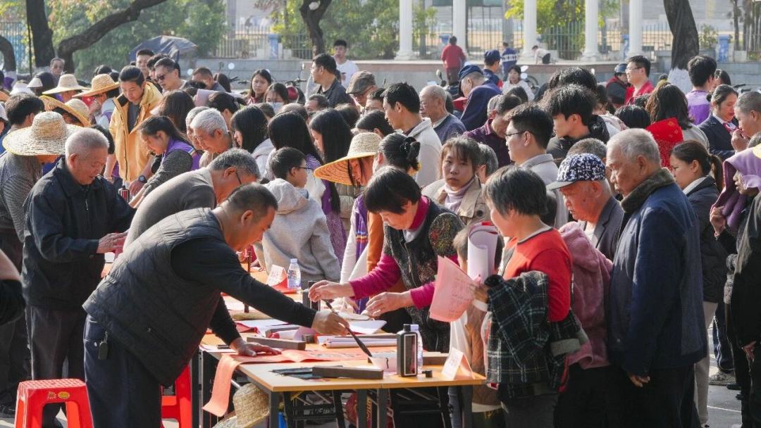 同时,由桥头镇宣传教育文体旅游办、东莞农村商业银行桥头支行和广东晟颐隆家居制品科技有限公司共同开展的送“福”活动也在现场举行,吸引众多群众关注。