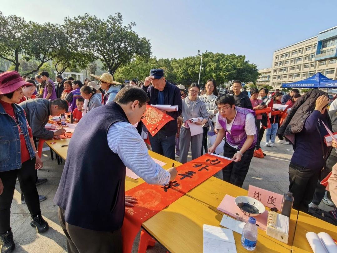 本次活动特邀张利平、沈度等十位本土书法家现场挥毫,将美好的新春祝愿凝于笔端。书法家们运笔如飞,一副副笔力遒劲的春联、一个个姿态各异的“福”字跃然纸上,引得市民纷纷驻足,有序排队领取。