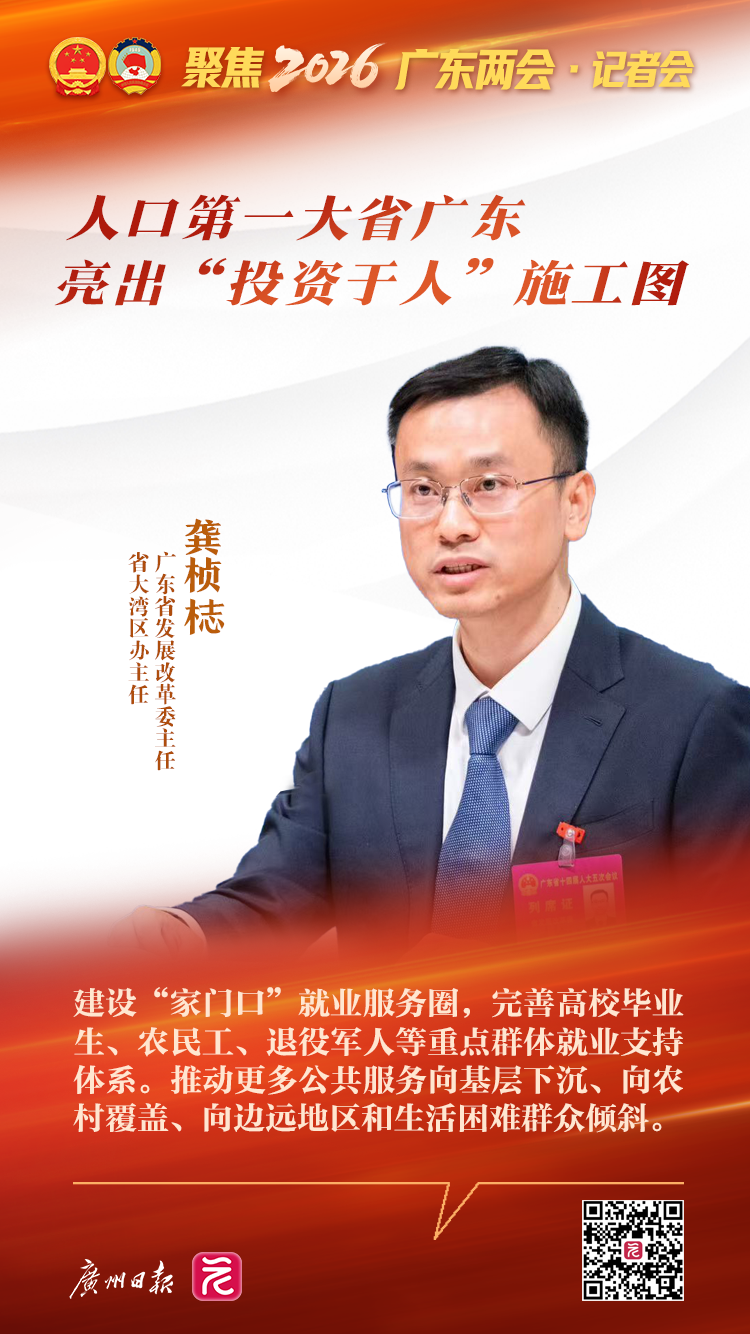 1月26日,在广东省十四届人大五次会议省直部门专场记者会上,省发展改革委主任、省大湾区办主任龚桢梽系统阐述了广东在“投资于人”方面的战略规划和具体举措。