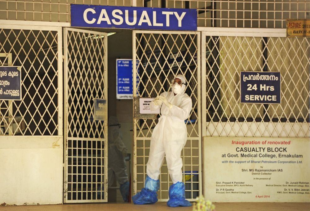 2019年6月,在印度喀拉拉邦戈奇,一名卫生人员在隔离区域工作。图/新华社
