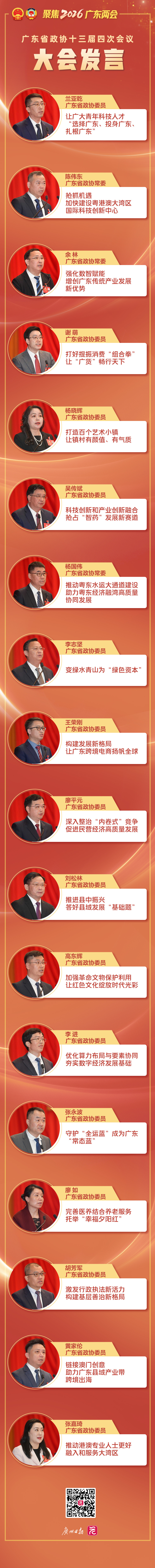 1月27日,广东省政协十三届四次会议举行大会发言,18位委员相继登台,聚焦粤港澳大湾区建设、“百千万工程”推进、科技创新、民生福祉等议题,建务实之言,献创新之策。