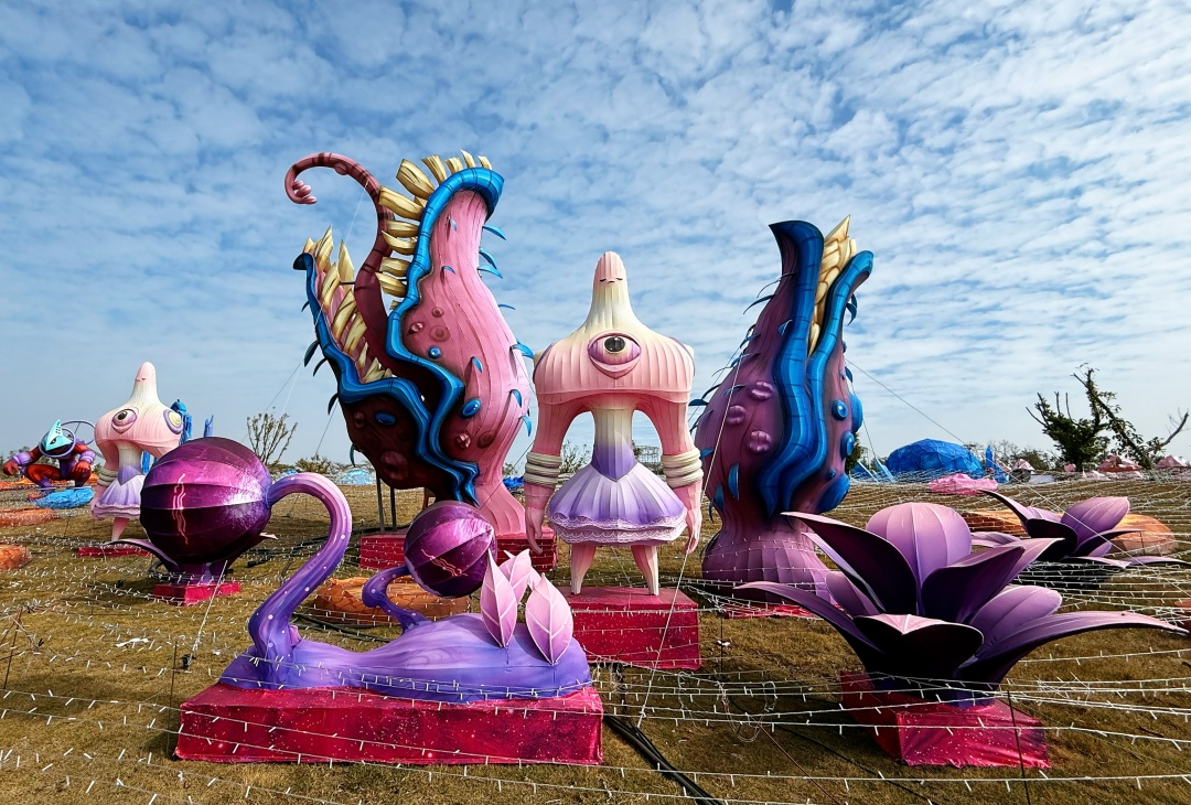 1月27日,2026年大湾区灯会“逍遥天地·数智未来”展区,“粉梦星”灯组。
