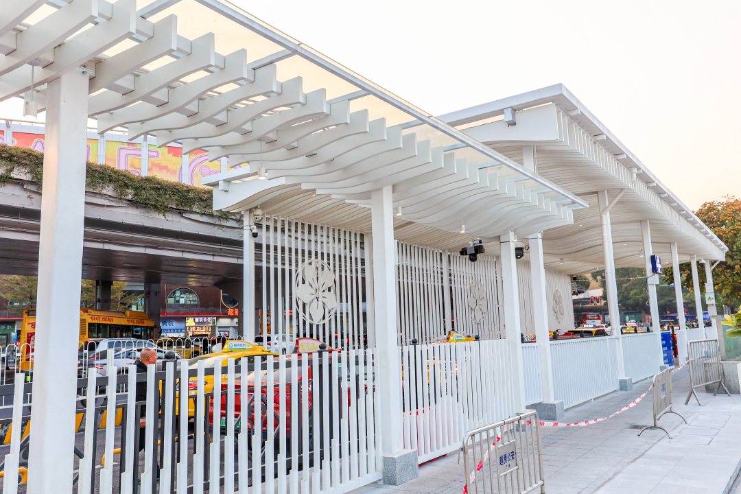 同步加装风雨连廊,实现与火车站新开东进站口的无缝衔接,为旅客提供晴雨无忧的出行环境。并将原有围挡更换为兼具实用与美观的花箱式护栏。系统优化完善指示标识体系,让交通导引更清晰直观,兼顾通行效率与空间美感。