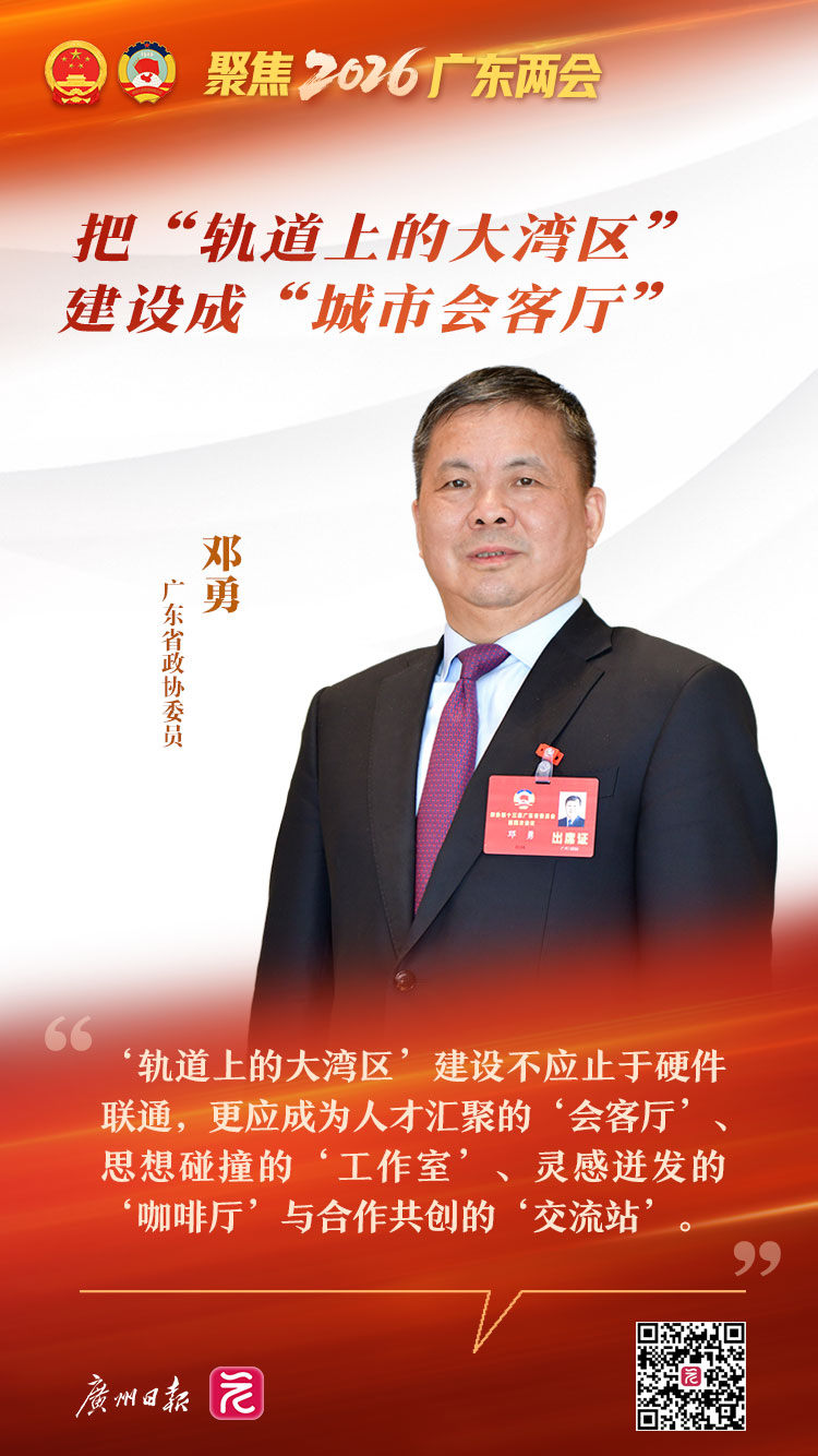 “‘轨道上的大湾区’建设不应止于硬件联通,更应成为‘城市会客厅’。”今年,广东省两会期间,广东省政协委员、中国铁建华南区域总部党委书记、总经理邓勇,将关注重点放在如何推进“轨道上的大湾区”建设,以轨道交通赋能大湾区创新发展。