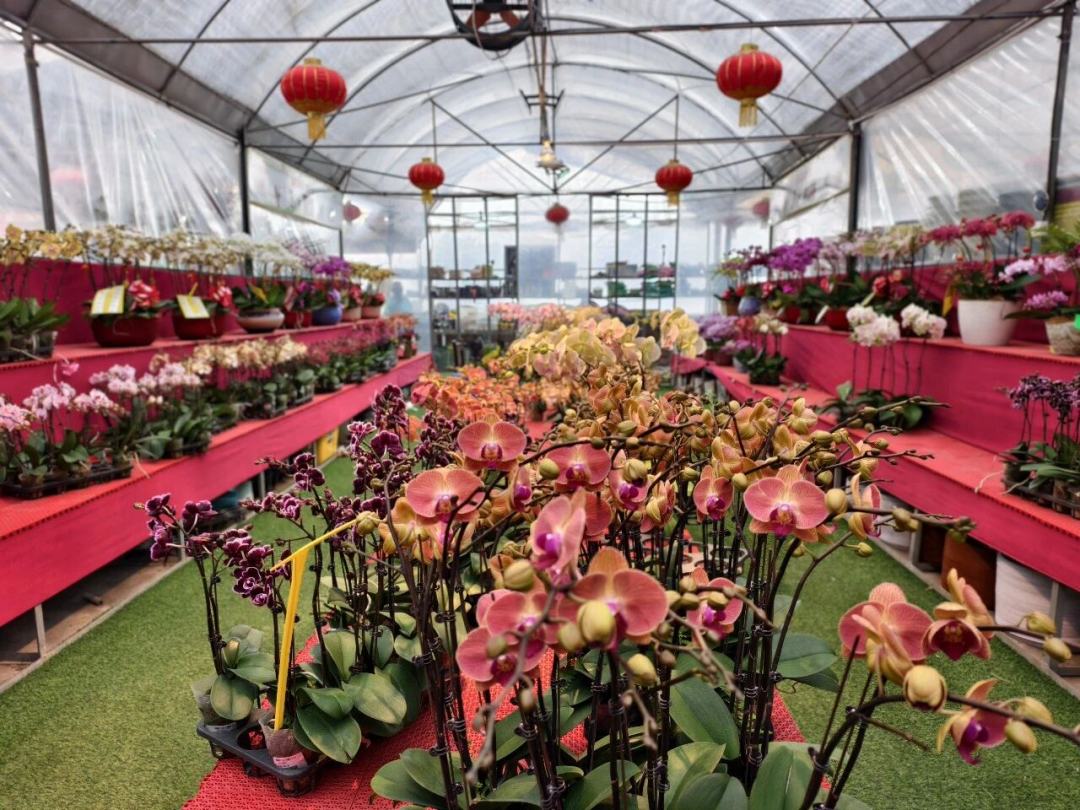 随着春节临近,前往基地选购年花的市民日益增多。苏蓉表示,目前销售以企业订单和批量预订为主,市场前景乐观。基地在拓展线下销售的同时,也积极开拓线上渠道,进一步拓宽市场。各类年宵花的畅销,不仅为节日增添了色彩,也为桥头镇乡村振兴注入了“绿色动力”。