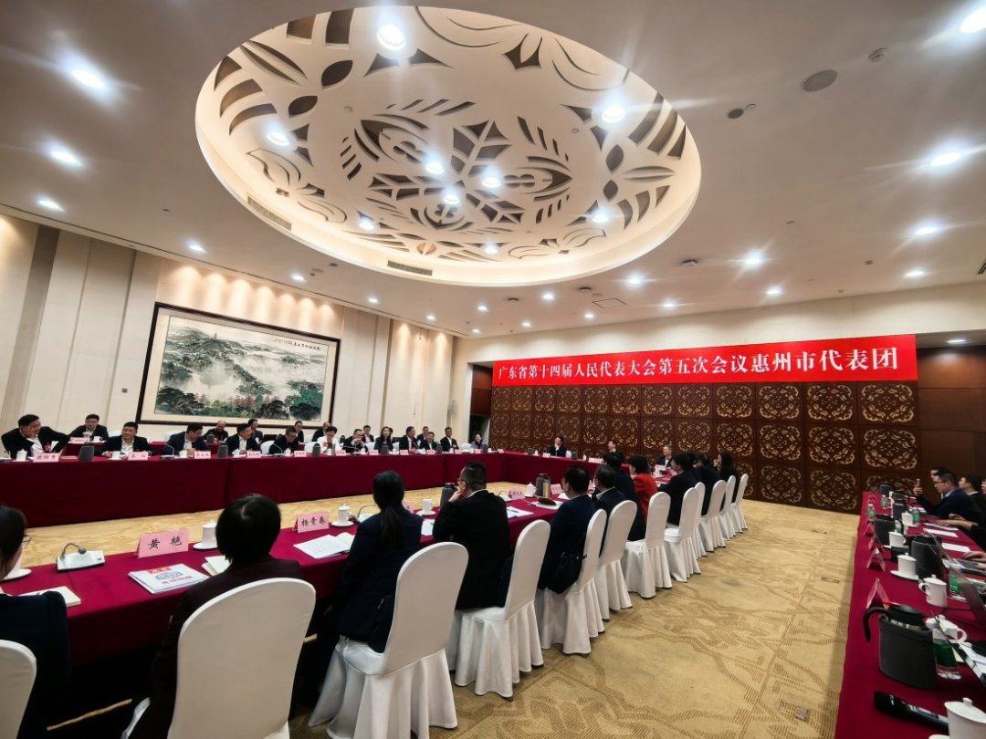 1月26日下午,省十四届人大五次会议惠州市代表团举行全体会议,并对媒体开放,中央、省、市媒体记者到会旁听采访。省人大代表、惠州市委书记、市人大常委会主任刘吉,省人大代表、惠州市委副书记、市长陈宇航,省人大代表、惠阳区委书记谭星海,省人大代表、惠东县平山街道办副主任陈桂荣分别就努力增创新优势、实现新突破,持续抓好“百县千镇万村高质量发展工程”,惠阳制造业“宝藏产品”、基层惠民变化与期盼等内容回答记者提问。