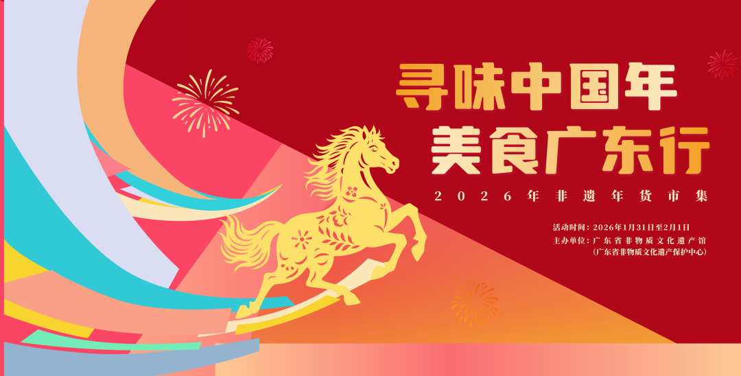 1月31日至2月1日,由广东省非物质文化遗产馆(广东省非物质文化遗产保护中心)主办的“寻味中国年 美食广东行—2026年非遗年货市集”,将在白鹅潭大湾区艺术中心户外广场西北侧举行。