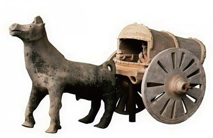 陶车(图6)为陶质马车模型,车厢顶部呈篷盖状,后方设门,其形制符合汉代“辇车”的典型特征。据汉代舆服制度,辇车多为贵族妇女所乘用,故车厢周侧常设有帷幕,既保障私密性,也体现出当时的社会礼仪与性别空间观念。作为随葬明器,此类陶马车再现汉代交通工具的具体形态,反映当时的丧葬习俗。本器出土于岭南地区的广州,可用于研究东汉时期车舆制度的传播。
