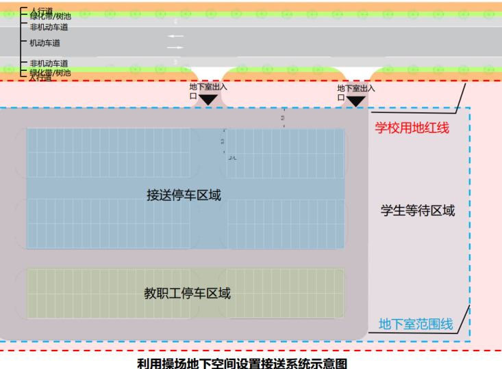 同时,《导则》还鼓励学校利用地下空间及周边地块建设公共停车场,在不缩减学校活动场地的前提下,实现地下空间开发,提升土地资源利用效率,一方面减少家长接送小孩路边停车对周边市政道路的影响,另一方面为学校周边居民、商业区提供停车位,缓解城区“停车难”问题。