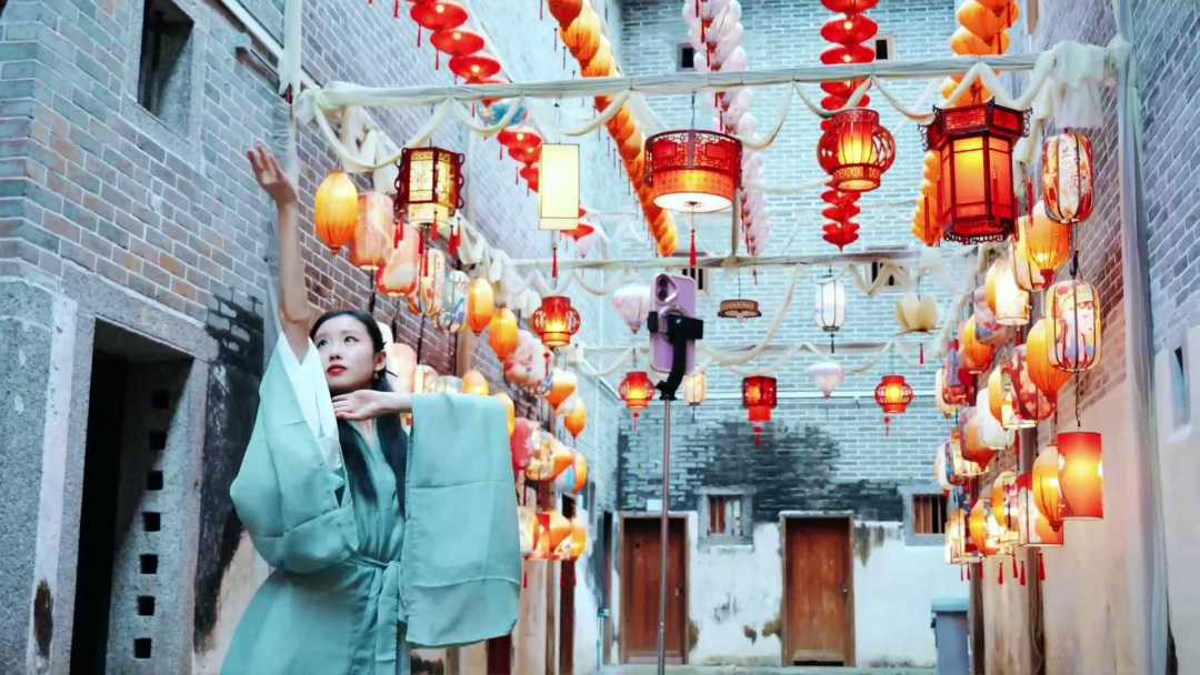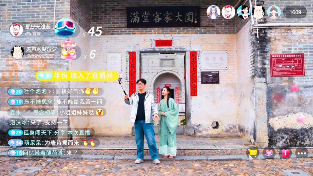 男主角陈墨,是一位土生土长的始兴青年,也是返乡创业的新生代代表。他自诩为“最帅Z世代堡主”,口中是热梗与流量逻辑,手中是直播设备与创业野心,希望用一场场流量,为沉寂多年的古村“破圈”。而女主角唐诗意则来自广州,是一位深耕国风美学的汉服博主,举止从容、言谈成诗。她所追寻的,是历史深处那份“一眼千年”的安静与尊严。