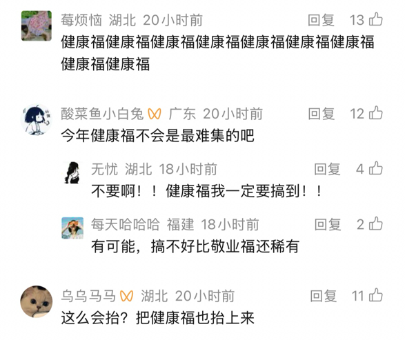在微博、小红书等平台,相关话题迅速升温。“健康福什么时候上线”等热帖引发广泛讨论,“健康福来了吗”这一话题更是冲上微博热搜。一条“什么福都行,但最想要一张‘健康福’,送给自己和家人”的留言引发广泛共鸣,收获了高赞。