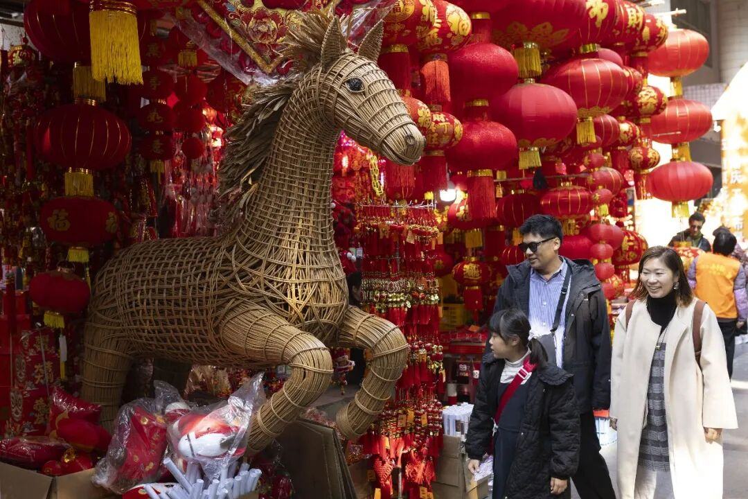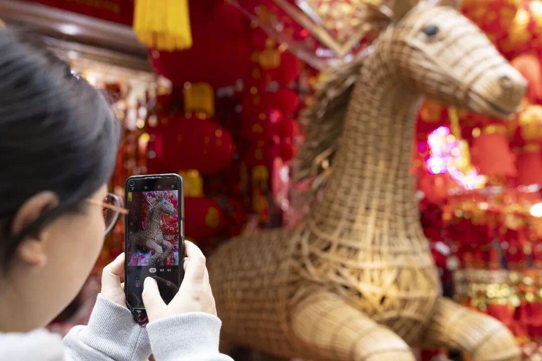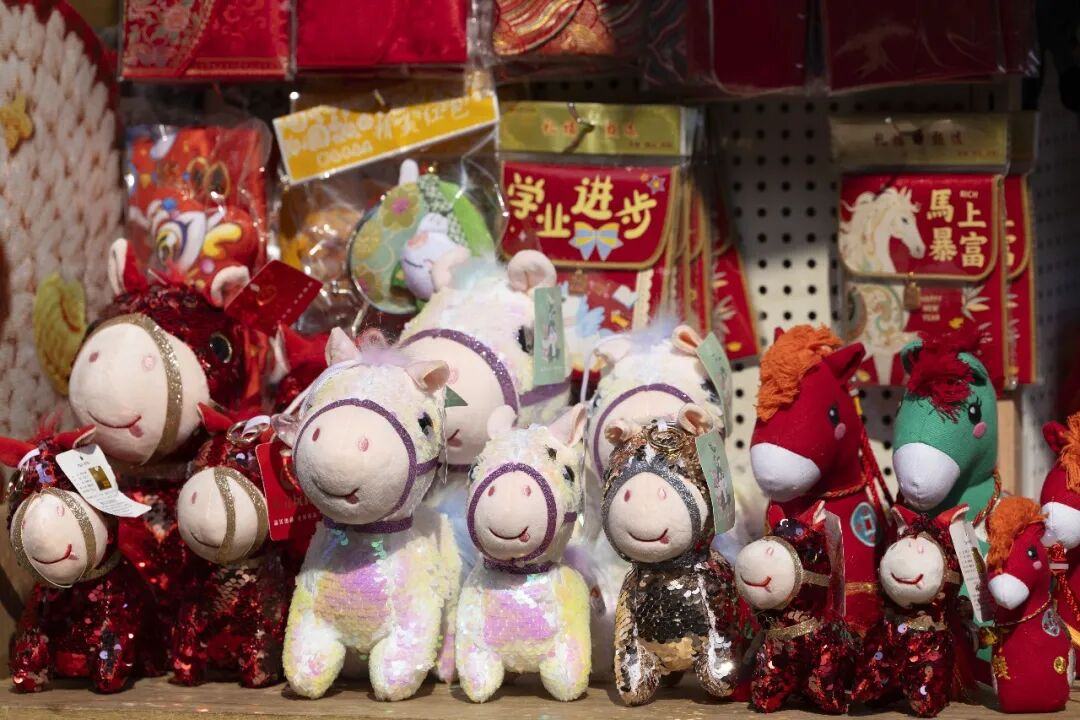 ▲在喜庆氛围中,广州一德路“年货一条街”马年主题饰品已上新。(摄影 | 广州日报新花城记者 陈忧子)