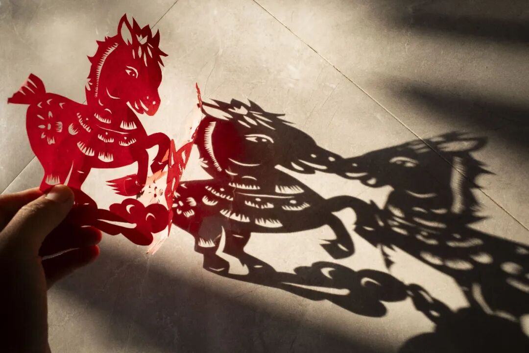 ▲广州日报新花城记者陈忧子与孩子共同创作的马年剪纸。(摄影 | 广州日报新花城记者陈忧子)