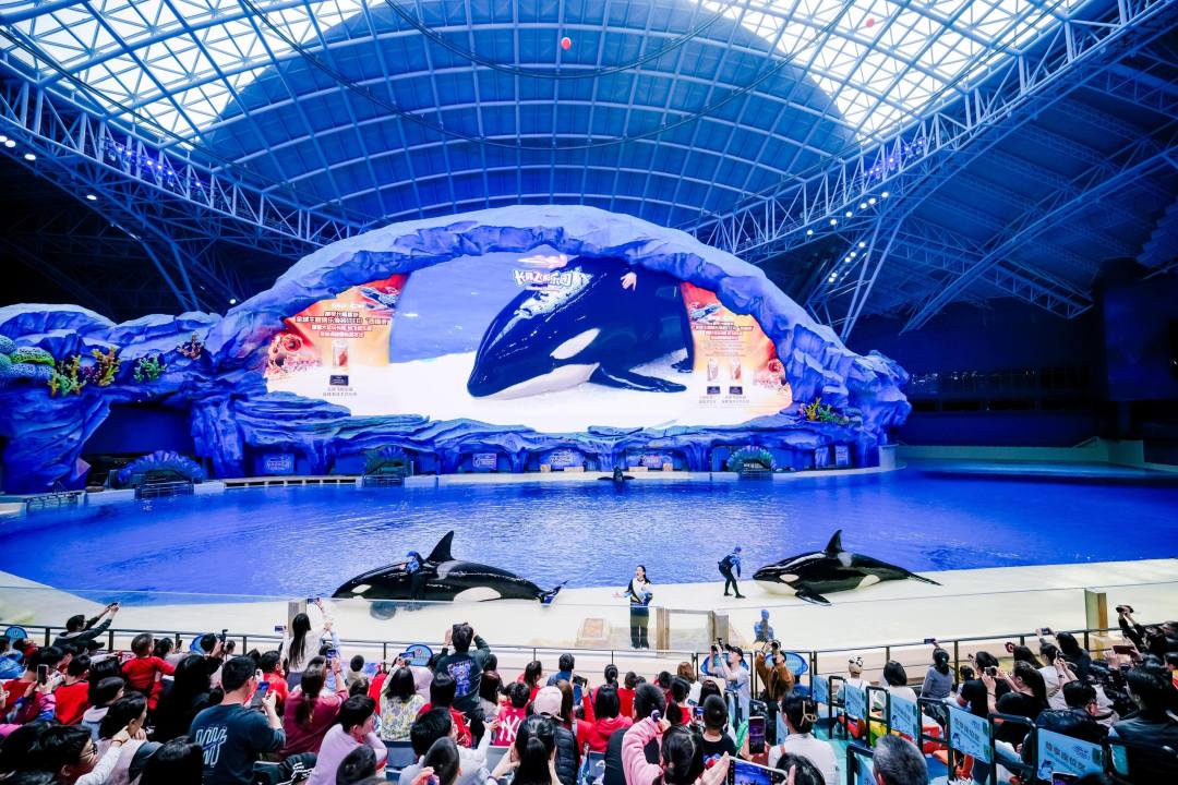 步入长隆飞船乐园,园区已“穿上”节日红装,欢快的新春鼓点奏响,节日氛围扑面而来。虎鲸大家族齐贺岁、贝加尔海豹萌趣拍肚皮、太平洋斑纹海豚跃水送福、西非海牛慵懒献礼、双髻鲨巡弋送喜、活体珊瑚“缀满吉兆”——“六大福星动物”携15万尾海洋鱼群上演“海洋动物花式拜新年”,将海洋世界的生机与新春的喜庆氛围深度融合,为游客带来独特的视觉体验。当下,长隆飞船乐园将海洋动物转化为情感化的“福星”IP,与春节超级文化符号创新融合,正从单一游乐转向一站式情感消费的记忆创造地。