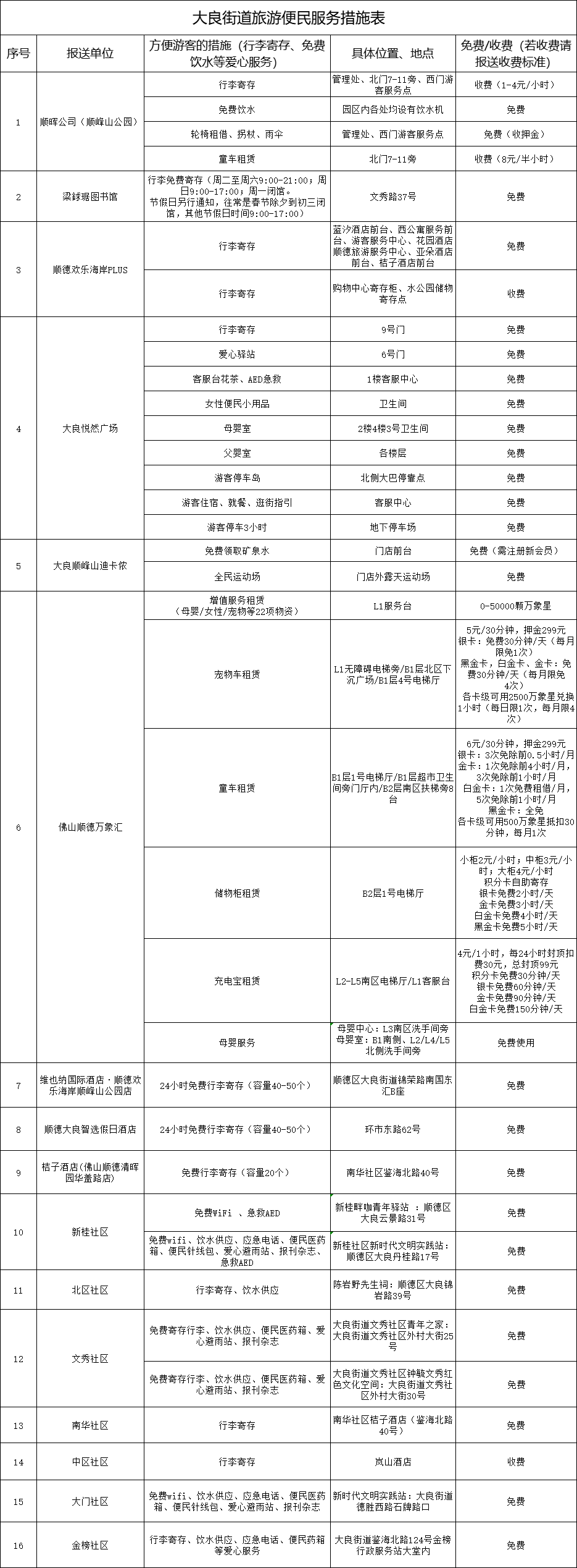 游客来大良哪些地方可以免费存行李,哪些便民点可以提供服务?这个攻略一定要看看。