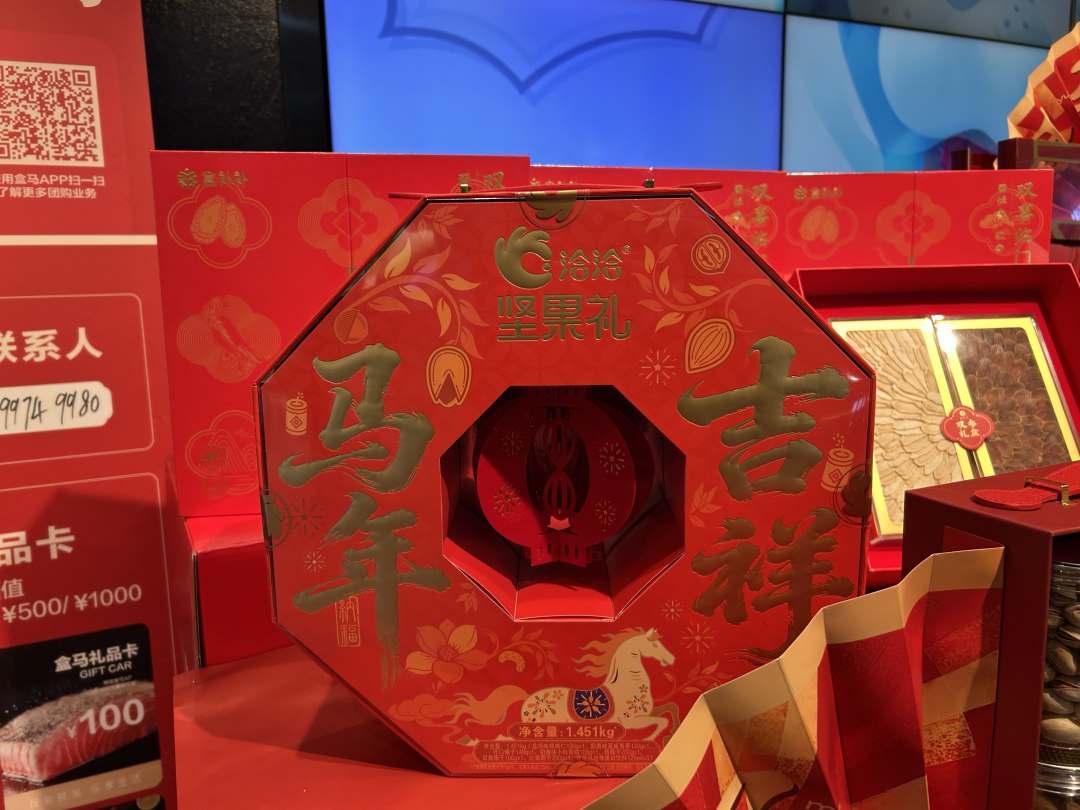 马年元素也成为今年年货市场的设计主线。在超市Olé,工作人员介绍,品牌专门推出了多款马年主题限定礼盒,如寓意吉祥的“马上有财”综合礼盒、口味与造型兼具的“马上星运”定制曲奇礼盒等,将生肖文化与年节赠礼场景深度融合。“我们也是呼应现在‘轻囤货、重体验’的消费趋势,”工作人员补充道,“希望用更有设计感和寓意的好产品,满足消费者一站式购齐、同时收获情感价值的新需求。”