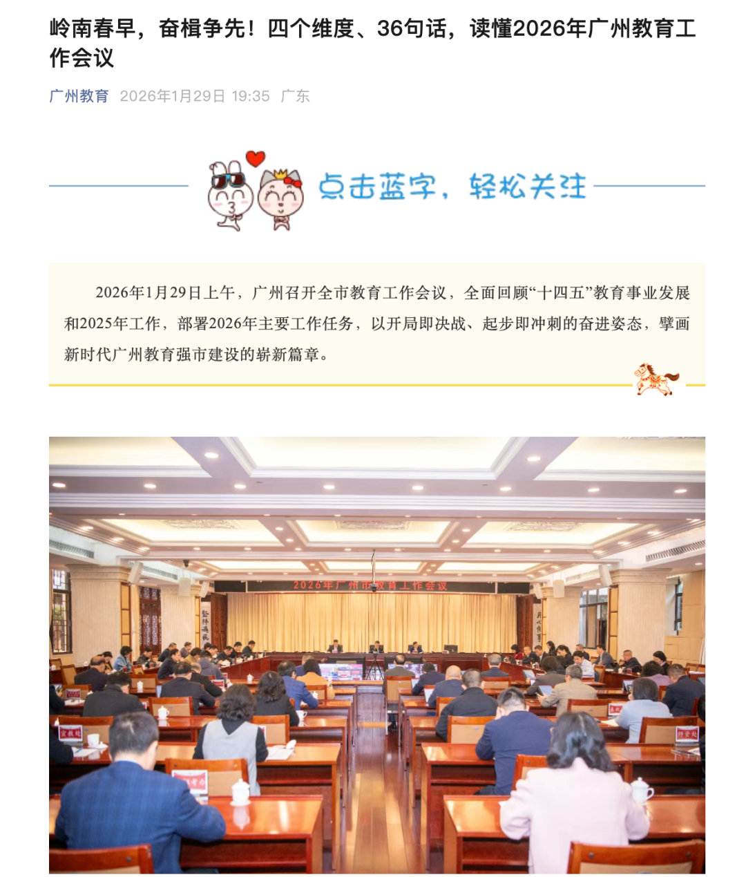 在推进产教深度融合方面,广州市教育局将推动出台并落实《广州市职业教育促进条例》,推动建立“两报告、一目录”制度(即产业结构动态调整报告、行业人才需求预测报告、职业教育重点发展专业目录),进一步完善专业动态调整机制。同时,广州将推进“双师型”队伍升级,2026年将推动中职“双师型”教师占比达85%。